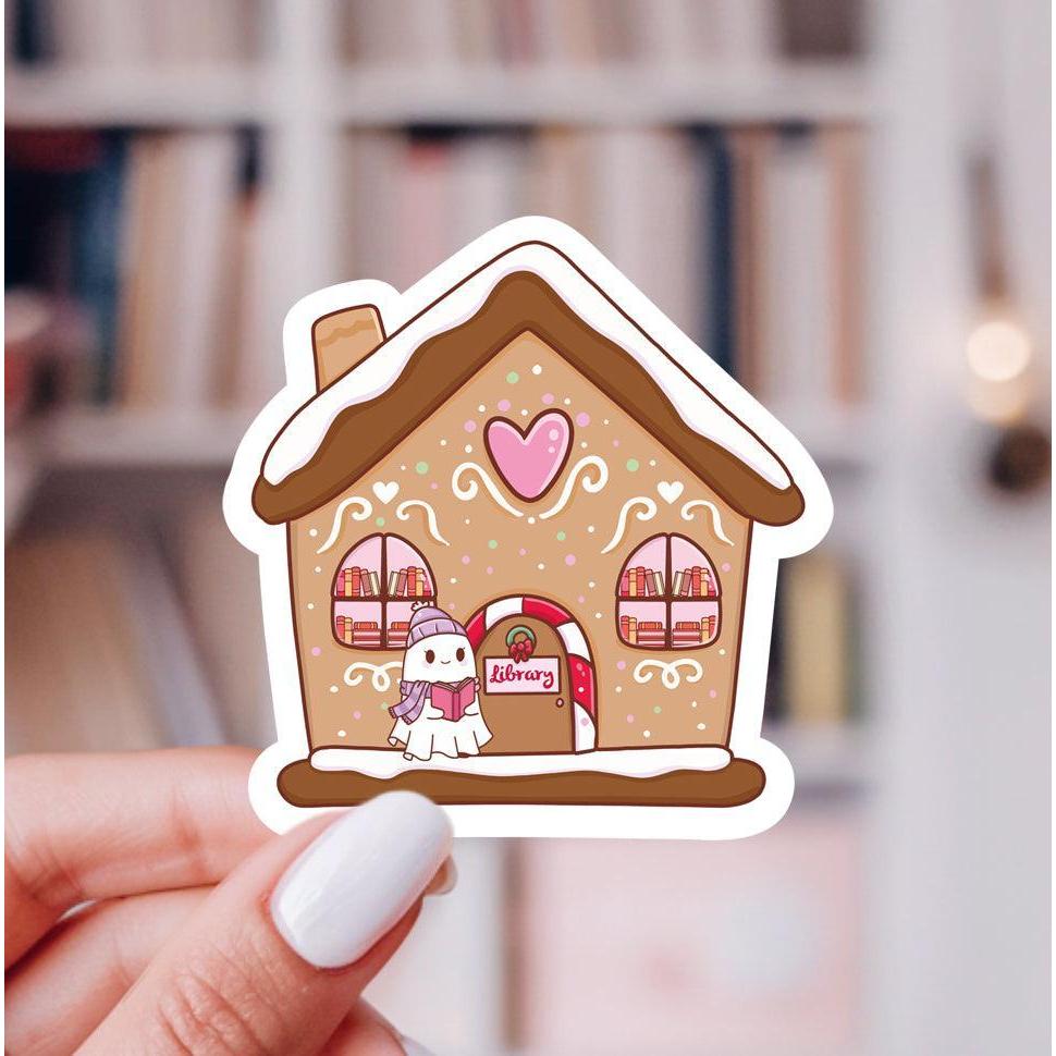 Gingerbread House Ghost Library Sticker