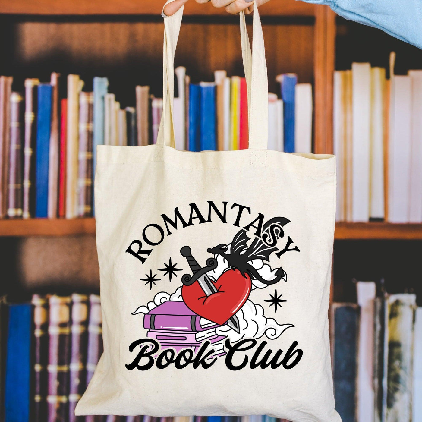 This tote functions as an everyday tote bag to carry your everyday necessities, trips to the bookstore or library to carry your latest books, or simply running errands. The whimsical design and bright colors, makes this the perfect bookish gift for bookworms who love romantasy books.