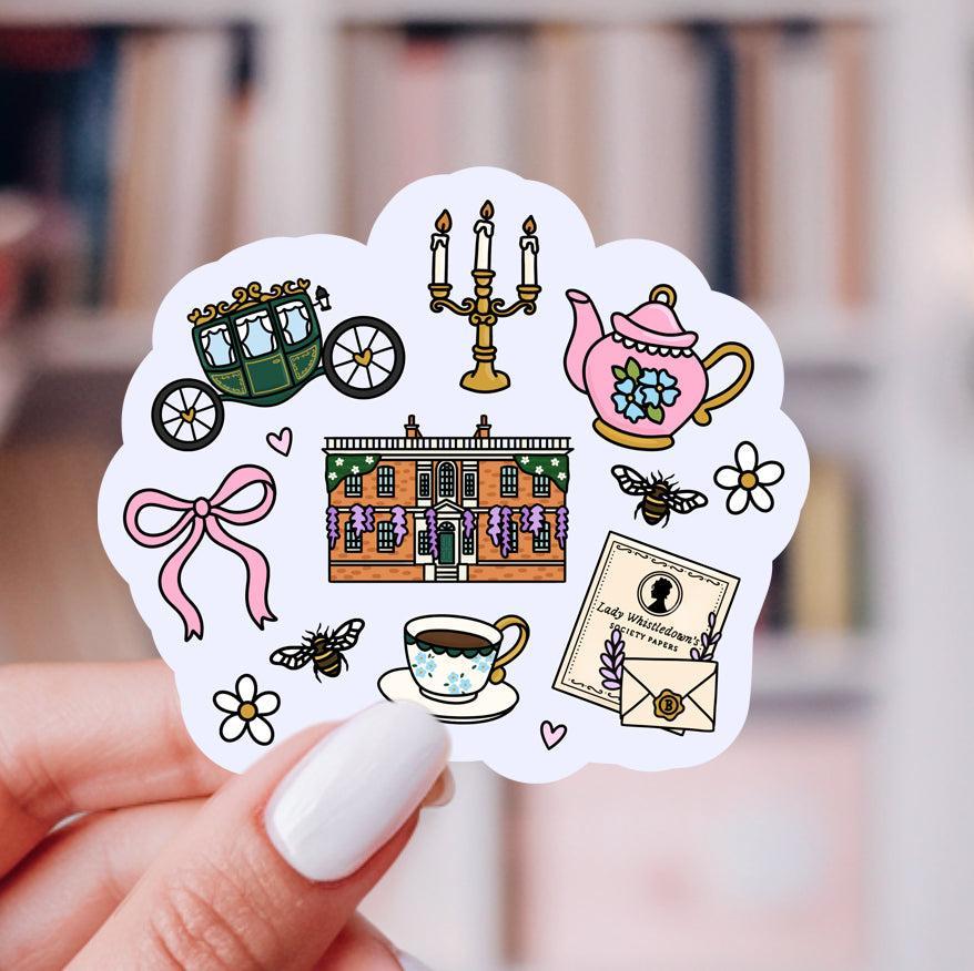 Perfect for decorating your laptop, notebooks, journal, water bottle, kindle and more! A fun addition to your Bridgerton sticker collection, and a cute gift for regency romance lovers.