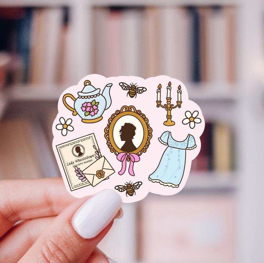 Perfect for decorating your laptop, notebooks, journal, water bottle, kindle and more! A fun addition to your Bridgerton sticker collection, and a cute gift for regency romance lovers.